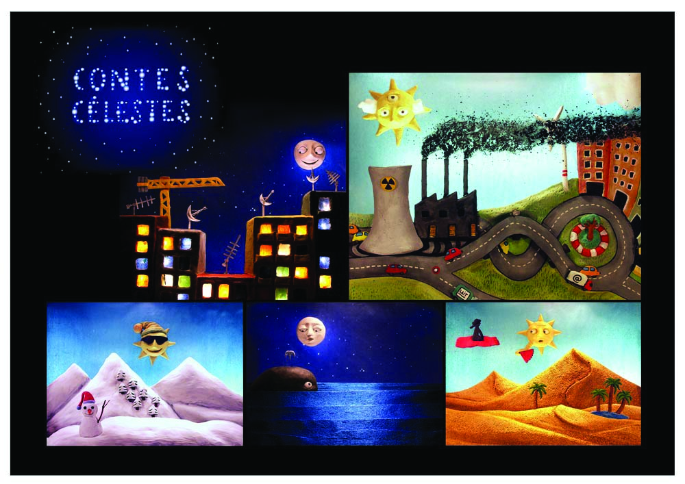 Así como estos ejemplos, existe otra serie de animación cuya temática gira en torno a la conciencia ecológica llamada Cuentos celestes, dirigida por los españoles Irene Iborra y David Gautier en el año 2005, financiada y producida en Francia por: Chromatiques, Patrick Chiuzzi; CAP CANAL, Cécile Thailander 2005; Phillippe Beauchamps, Emile Beauchamps y Zohora Chinoune.
